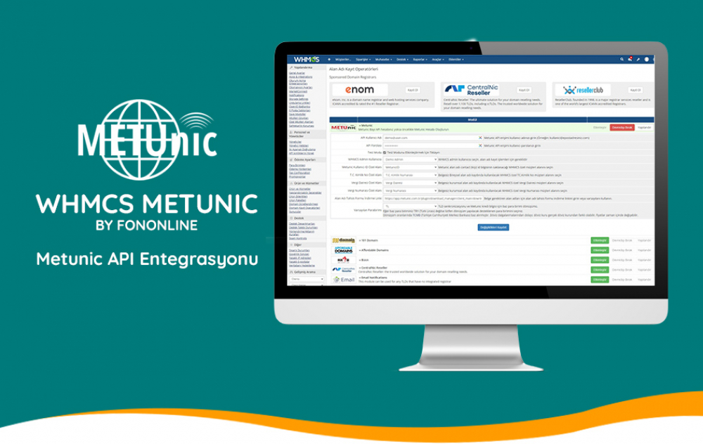 Bu modül Fononline tarafından WHMCS Sunucu Yönetimi Otomasyon Yazılımı için geliştirilmiş bir metunic.com.tr alan adı kayıt operatörü entegrasyonudur. Metunic tarafından sunulan tüm gTLD'leri ve ccTLD'leri desteklemektedir.
