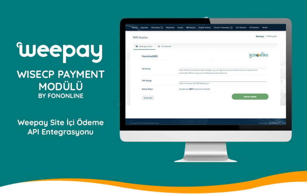 Bu modül Fononline tarafından WiseCP Otomasyon Yazılımı için geliştirilmiş bir Weepay sanal pos api entegrasyonudur.